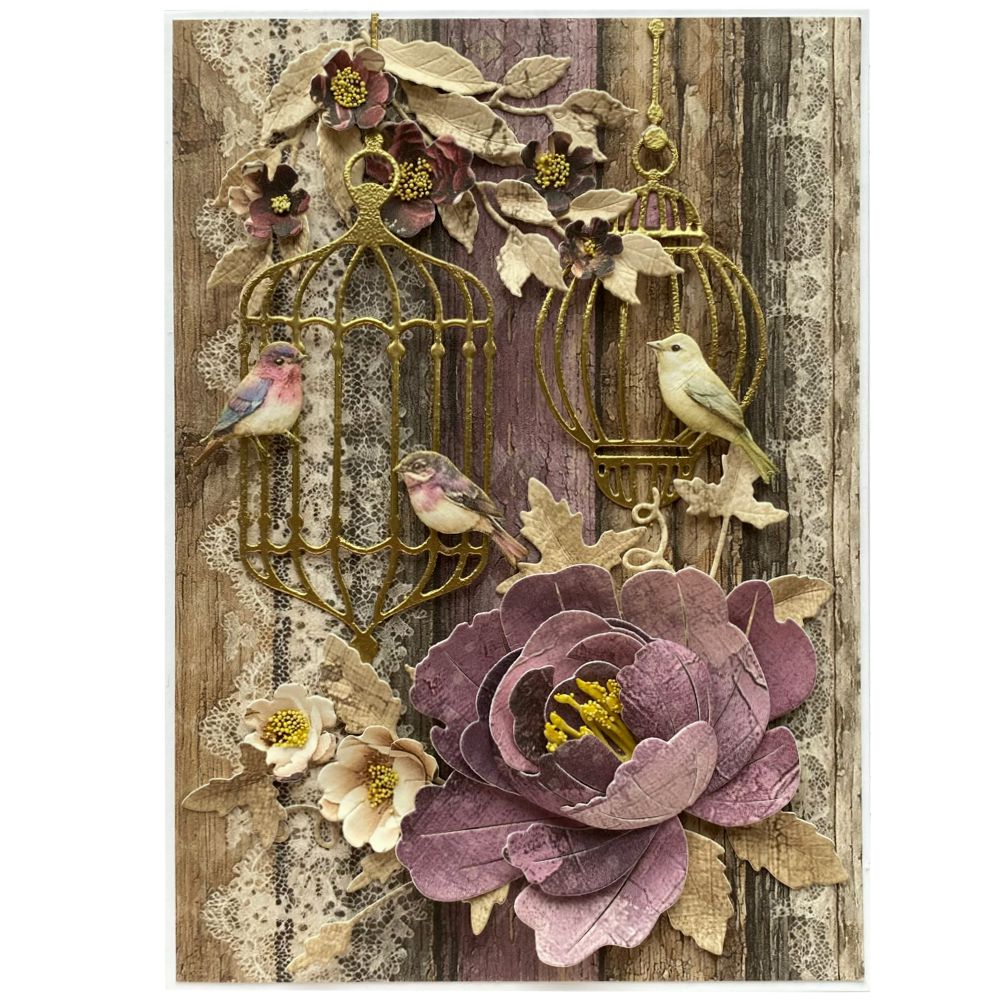- Přáníčko do obálky - Květinové s ptáčky 2