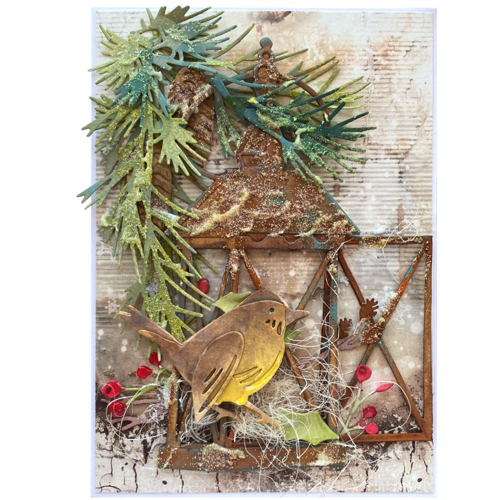 Základ je rozevírací papírové přání (bílé, gramáž papíru 300g). Papírová dekorace.