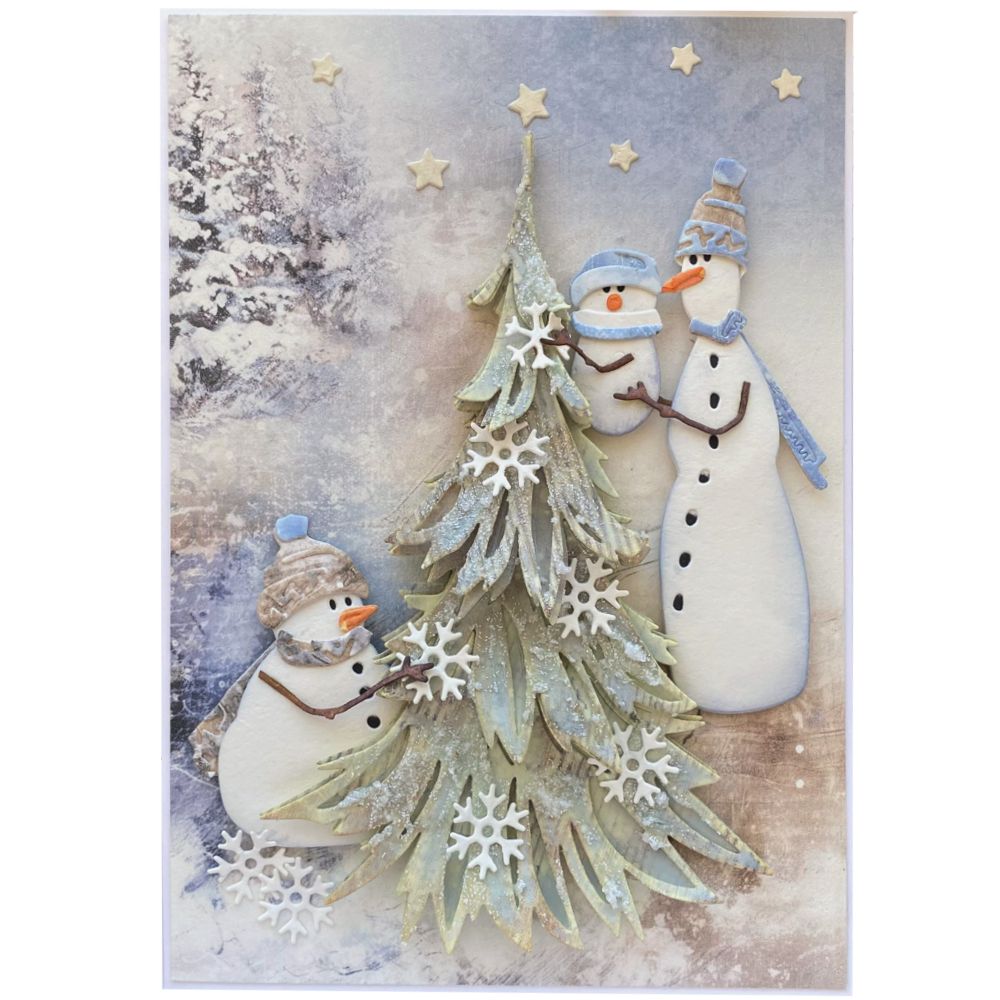 Vánoční přáníčko - Sněhuláci - zdobení stromečku