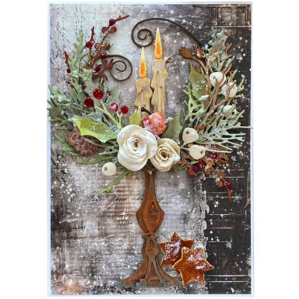 Vánoční přáníčko se svícnem a dekorací.