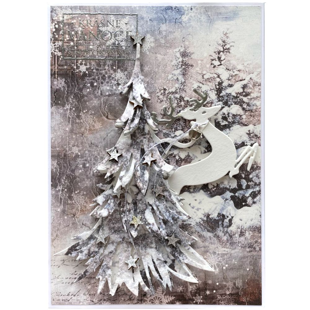 Vánoční přáníčko - Zasněžený strom s jelenem
